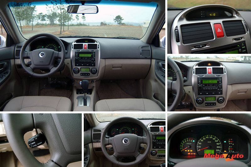 센터 페시아에 필름 재질을 사용해 메탈릭한 분위기를 만들어 내고 있는데 컴퓨터 세대의 감성에 호소하려는 듯이 보인다. 두 개의 디스플레이 창과 아래쪽 두 개의 큼지막한 다이얼이 조화를 이루고 있다. 센터 페시아의 버튼과 운전석 도어에 설계된 윈도우 개폐 및 사이드 미러 조절 스위치 등 아반떼 XD와의 부품 공유 흔적이 군데군데 보인다.